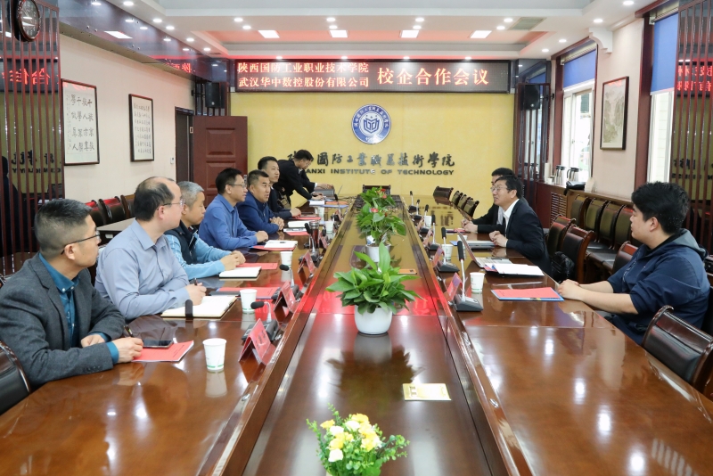 4月9日,武汉华中数控股份有限公司副总裁蒋荣良一行四人来校交流考察,学校副校长孟繁增出席座谈交流会,教务处、智能制造学院相关人员参加座谈。