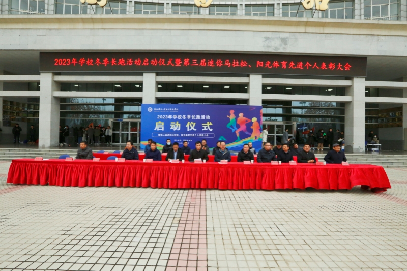 为贯彻落实中共中央办公厅、国务院办公厅印发的《关于全面加强和改进新时代学校体育工作的意见》文件精神,将习近平总书记在党的二十大报告中提出的“要坚持健康第一的教育理念,加强学校体育工作”指示精神落到实处,进一步加强体育工作,增强学生体质,我校于12月12日下午,我校在北校区图书馆前举行了2023年学校冬季长跑活动启动仪式暨第三届校园马拉松比赛、阳光体育运动先进个人表彰大会。校长刘敏涵,党委副书记杨聪、副校长孟繁增出席活动。学校党政办、宣传部、必威app安卓版无弹窗部、团委、教务处、后勤处、保卫处及各分院负责人出席了本次大会。大会由军事体育部部长王茂利主持。