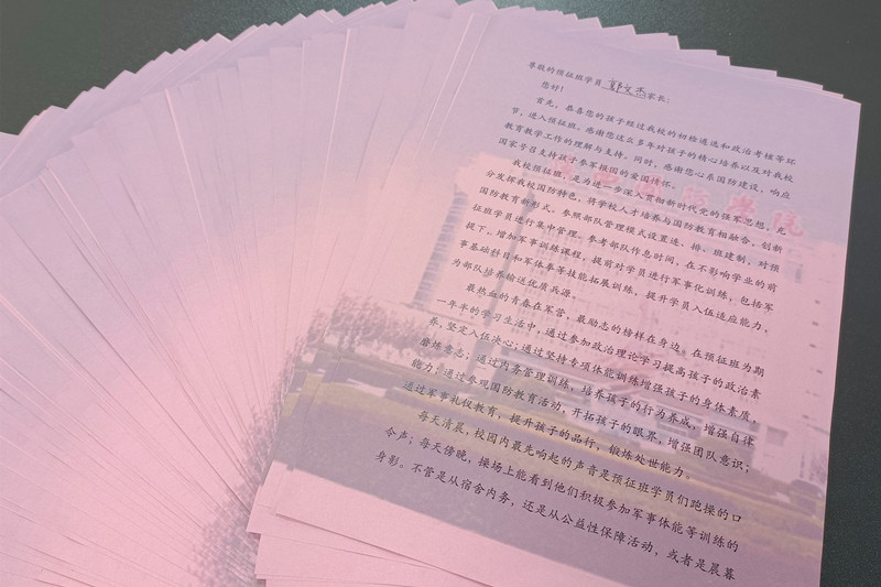 沟通是给父母最好的礼物,感恩是对父母最好的报答。我校征兵工作站倡导预征班学员用自己的诚心、孝心、爱心亲手写一封家书。学校为学员们准备了信笺纸和信封,准备给学员家长们一封充满惊喜的“家书”。为了让家长能看到学员们的生活情况,附上学员进入预征班后的生活照,以及征兵工作站代表学校给学员家长的一封信,寄给每一位学员家长。感谢家长对学校工作的支持及响应国家号召支持孩子参军报国的爱国情怀!