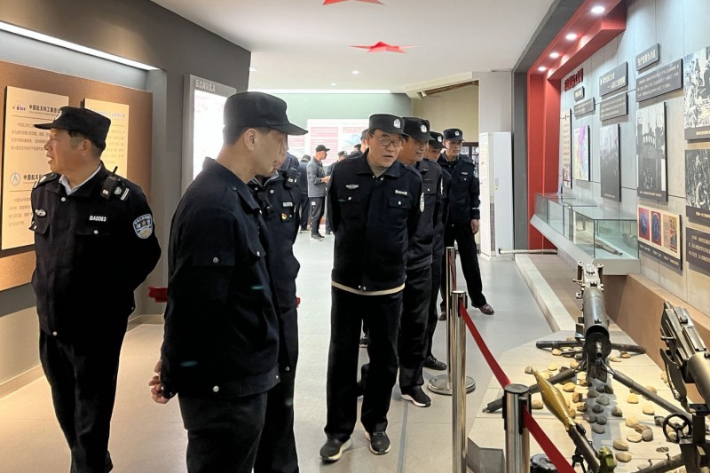 为进一步促进保卫处保安队员爱党、爱校、爱岗位,努力从党的光辉历程中砥砺初心使命,汲取前行力量,切实加强保安队伍建设,推进平安校园建设,4月15日上午,保卫处校卫队利用校内国防展馆红色军工资源,组织全体成员开展了“强化思想引领 共创平安校园”主题活动。