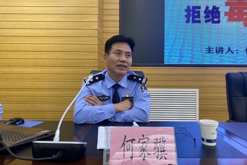 何家骥警长从鸦片战争的典故出发,激情澎湃的向同学们讲解了开展禁毒教育的必要性以及毒品的概念、种类和危害,介绍了一代、二代、三代毒品的区别和特点,强调了新型毒品极善伪装。针对在校学生好奇心强、辨识能力差等特点,何警官结合真实案例,以案说防,以案说法,以案示警,向同学们普及毒品对个人、家庭和社会造成危害的严重性。讲座过程中,通过现场问答的方式,帮助同学们学习和掌握毒品的“避坑”法则。加深了学生对禁毒知识的理解,也呼吁在场的同学们要筑牢思想防线,树立拒毒、防毒意识。