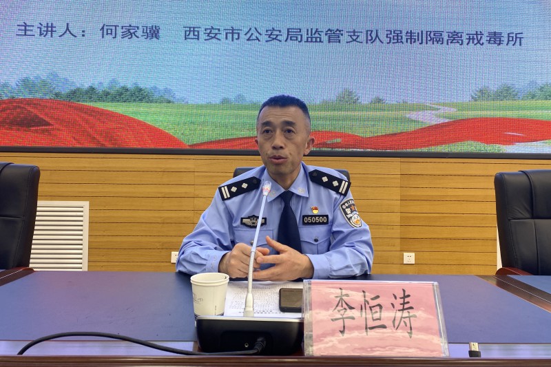 首先,戒毒所副所长李恒涛讲话,他呼吁在场的同学们要筑牢思想防线,树立主人翁意识并且迅速行动起来,用健康的行为抵御毒品的侵害,做一个珍爱生命、拒绝毒品的好青年,同时当好禁毒宣传员和监督员。