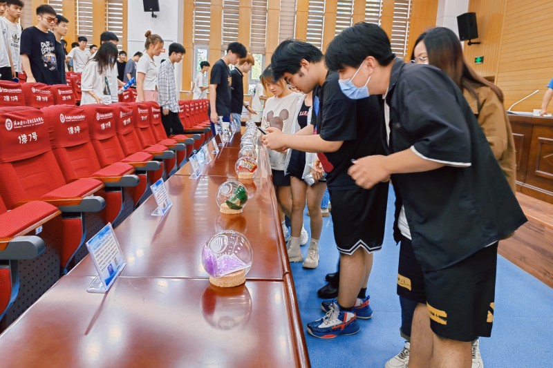 宣讲现场,为了让同学们更好的认识毒品,远离毒品,现场摆放了30余种毒品仿真模型,有罂粟、鸦片、海洛因、大麻、冰毒等常见的毒品以及彩虹烟、摇头丸、笑气、可乐、迷幻蘑菇等新型毒品,民警向同学们一一介绍,并为大家发放宣传手册,号召同学们从自身做起,无毒青春,健康生活。
