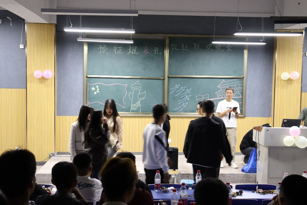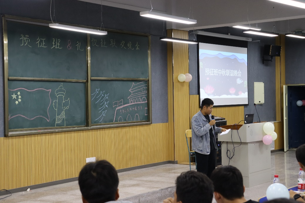 在中秋·国庆佳节即将到来之际,为活跃节日气氛,增进预征班、礼仪社同学友谊,加强两社团之间的交流与合作,9月26日晚,征班、礼仪社共同举办‘迎中秋·庆国庆’联谊晚会。在学校老师的关心和支持下,经过双方负责人和同学们的努力筹备,近两个小时的联谊晚会获得圆满成功。