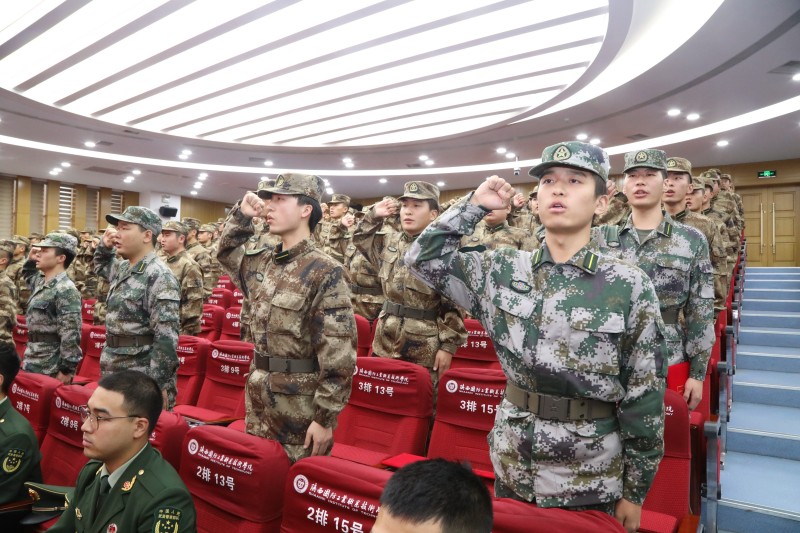 10月26日下午,我校在北校区学术报告厅举行退伍大学生欢迎仪式、军事类社团换届大会及2022级预征班成立仪式。校长刘敏涵、鄠邑区常委、鄠邑区人民武装部负责人、鄠邑区退役军人事务局负责人、校武装部负责人、学生处负责人、校团委负责人、征兵工作站负责老师、退伍大学生代表、军魂学社全体成员、国旗护卫队全体队员、预征班全体学员参加会议。大会由武装部部长徐哲主持。