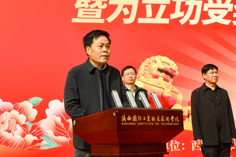 校长刘敏涵代表学校及全校师生向所有新兵同志们及立功受奖军人家属们表示祝贺,也向长期以来关心、支持学校发展的区政府和区人武部等相关参会领导表示热烈欢迎和衷心感谢。他提到学校近几年向部队输送兵员2100余人,每年应征人数居全省高校第一,还创建了陕西省首个储备基地“预征班”,本次我校就有53名2021级优秀预征班学员即将成为光荣的中国人民解放军战士,我们国家又将增加一支由陕西国防学子组成的保卫祖国、建设祖国的主力军,学校为此感到骄傲、自豪。当前世界面临百年未有之大变局,国家周边安全也面临着严峻的威胁和挑战,值此关键的历史时刻,他要求新兵们:一要珍惜荣誉,牢记使命;二要严格训练,献身国防;三要建功立业,为母校争光。