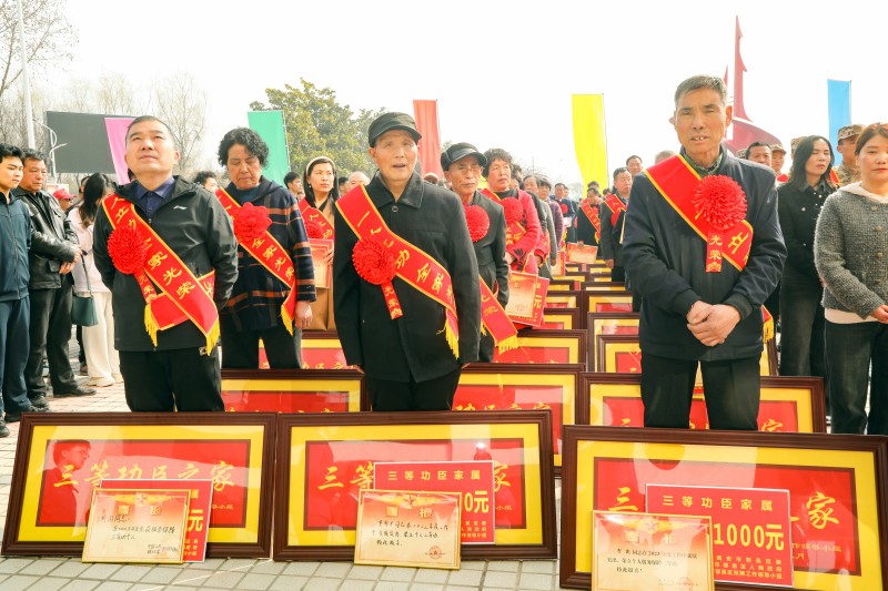 大会第一部分:为立功受奖军人家庭集中庆送喜报。仪式上,区退役军人事务局局长崔军宣读了30余名近期立功受奖现役军人名单。参会领导向受奖的现役军人家属颁发喜报并送上慰问金。立功受奖现役军人家属一一登台领取喜报,“作为军属,我的心情十分喜悦和自豪”立功军人家属代表说道,“今后我们全家将一如既往地鼓励孩子在部队安心服役,支持他为祖国的国防事业继续贡献力量”。