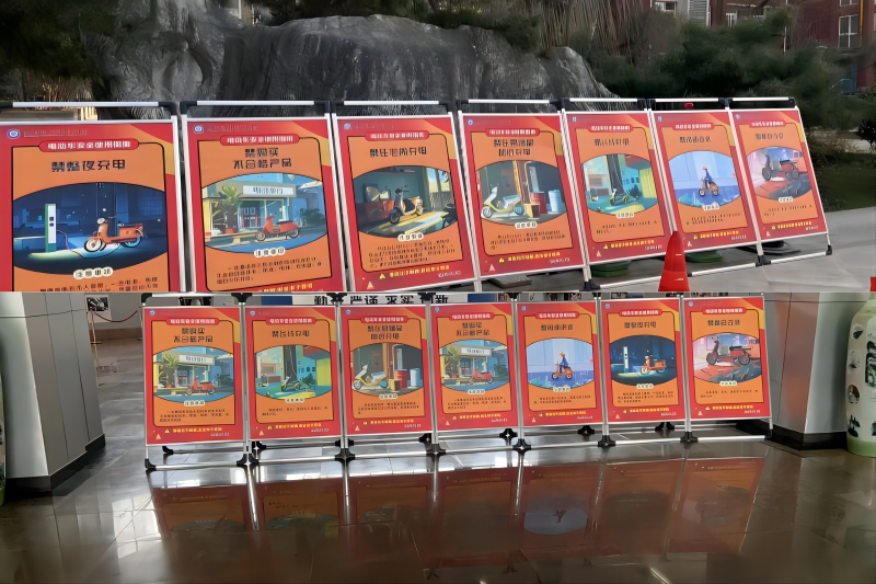 保卫处按照学校安全工作部署要求,在校园及家属院设置消防知识宣传展板,通过图、文介绍了电动车安全使用指南及电动车使用禁区等,吸引了广大师生员工及家属驻足观看学习。
