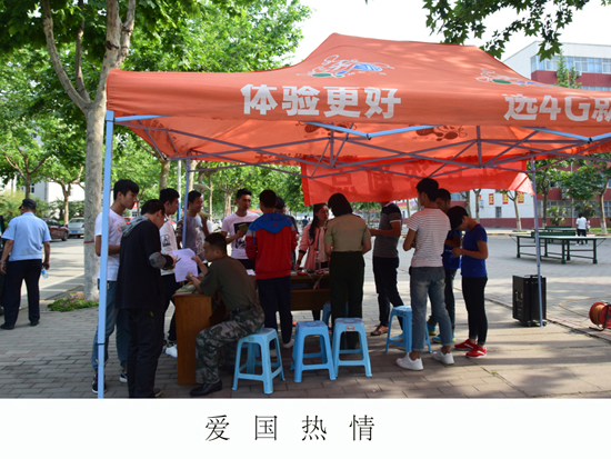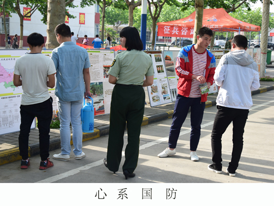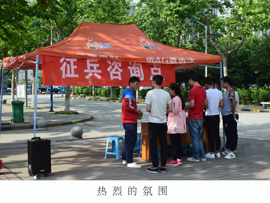 5月16号,我院保卫科联合户县武装部在我院开展为期一周的征兵宣传活动,在女生公寓东侧设立征兵咨询点,由我院部分退役学生以自己的亲身经历为广大师生解答相关法规、政策以及军营生活,我院学生关注国防,现场气氛热烈。