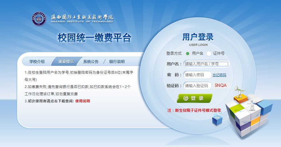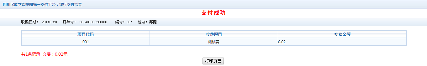 3. 银行交易完成后,如缴费失败,请到网上银行查询银行卡是否已扣款,如已扣款切勿重复缴费,学校会在1-2个工作日恢复次交易