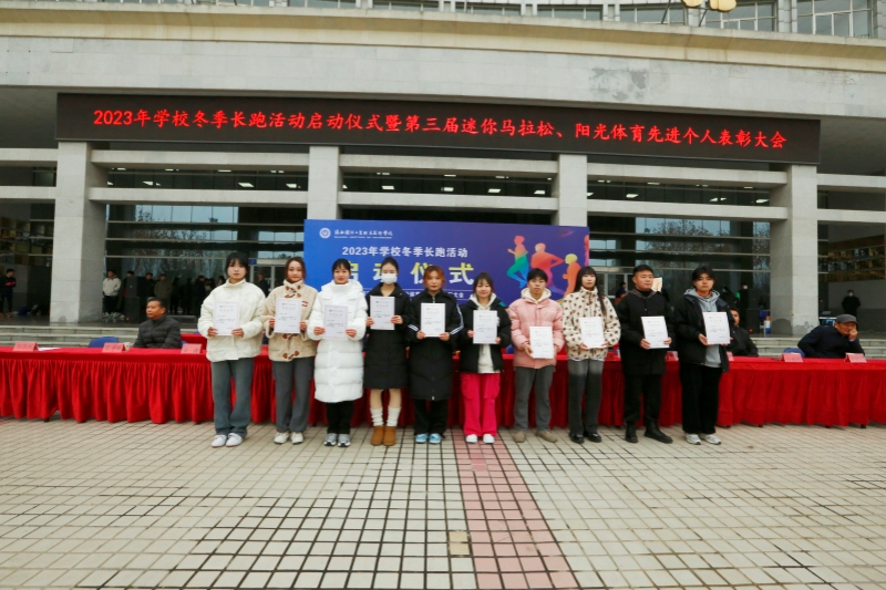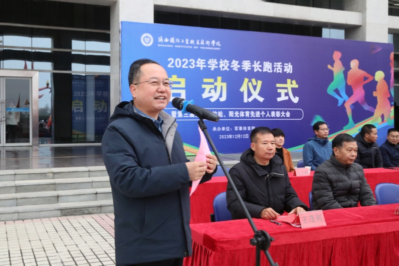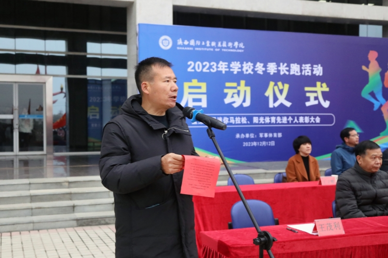 为贯彻落实中共中央办公厅、国务院办公厅印发的《关于全面加强和改进新时代学校体育工作的意见》文件精神,将习近平总书记在党的二十大报告中提出的“要坚持健康第一的教育理念,加强学校体育工作”指示精神落到实处,进一步加强体育工作,增强学生体质,我校于12月12日下午,我校在北校区图书馆前举行了2023年学校冬季长跑活动启动仪式暨第三届校园马拉松比赛、阳光体育运动先进个人表彰大会。校长刘敏涵,党委副书记杨聪、副校长孟繁增出席活动。学校党政办、宣传部、必威app安卓版无弹窗部、团委、教务处、后勤处、保卫处及各分院负责人出席了本次大会。大会由军事体育部部长王茂利主持。