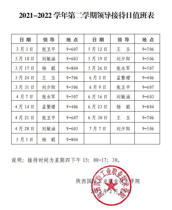上一条:2022-2023学年第一学期院领导接待日值班表下一条:2021-2022学年第二学期2月28日-4月30日通勤车安排