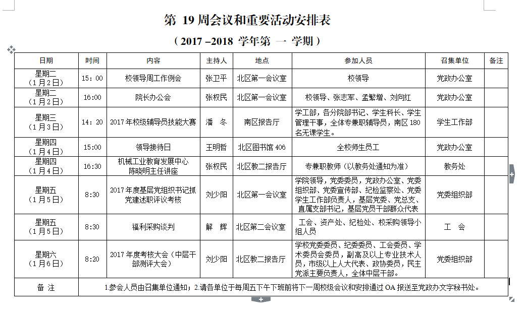 上一条:第 二十 周会议和重要活动安排表(2017 -2018 学年第 一 学期)下一条:第 十八 周会议和重要活动安排表(2017 -2018 学年第 一 学期)