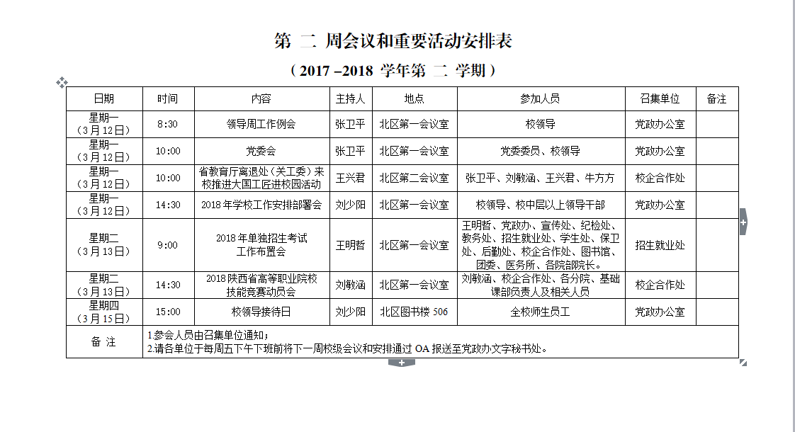 上一条:第 三 周会议和重要活动安排表 (2017 -2018 学年第 二 学期)下一条:第 一 周会议和重要活动安排表 (2017 -2018 学年第 二 学期)