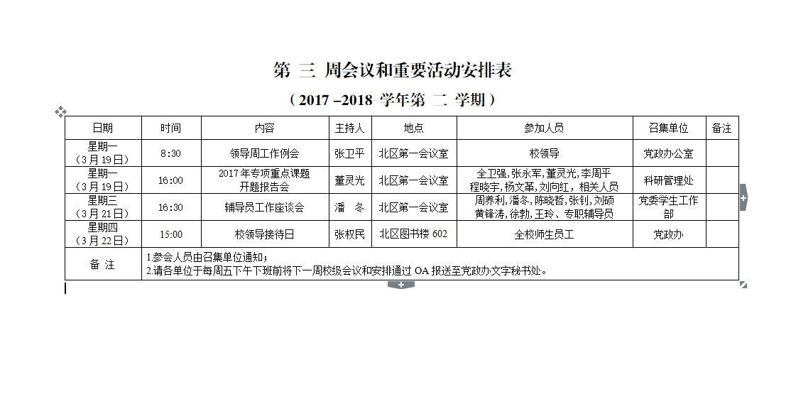 上一条:第 四 周会议和重要活动安排表 (2017 -2018 学年第 二 学期)下一条:第 二 周会议和重要活动安排表 (2017 -2018 学年第 二 学期)