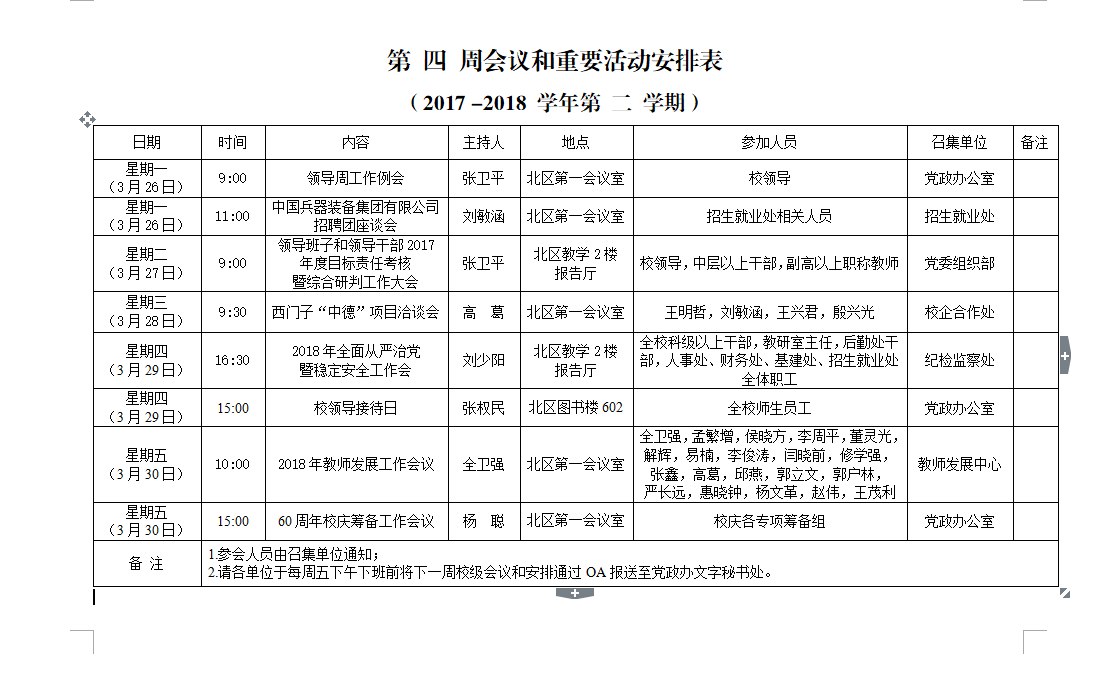 上一条:第 五 周会议和重要活动安排表 (2017 -2018 学年第 二 学期)下一条:第 三 周会议和重要活动安排表 (2017 -2018 学年第 二 学期)