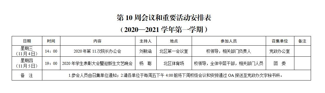 上一条:2020-2021学年第一学期第11周会议和重要活动安排下一条:2020-2021学年第一学期第9周会议和重要活动安排