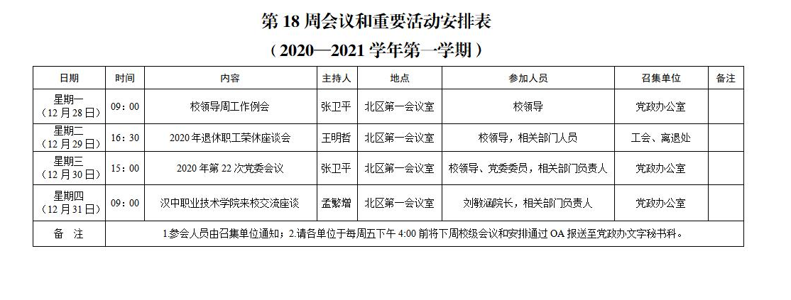 上一条:2020-2021学年第一学期第19周会议和重要活动安排下一条:2020-2021学年第一学期第17周会议和重要活动安排