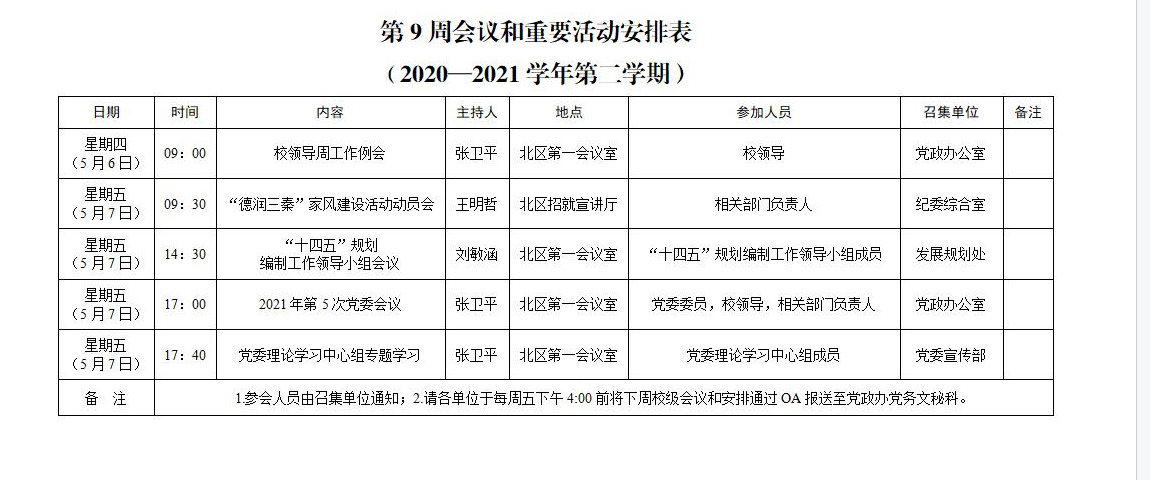 上一条:2020-2021学年第二学期第10周会议和重要活动安排下一条:2020-2021学年第二学期第8周会议和重要活动安排
