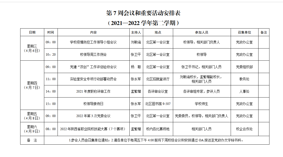 上一条:2021-2022学年第二学期第10周会议和重要活动安排下一条:2021-2022学年第二学期第6周会议和重要活动安排