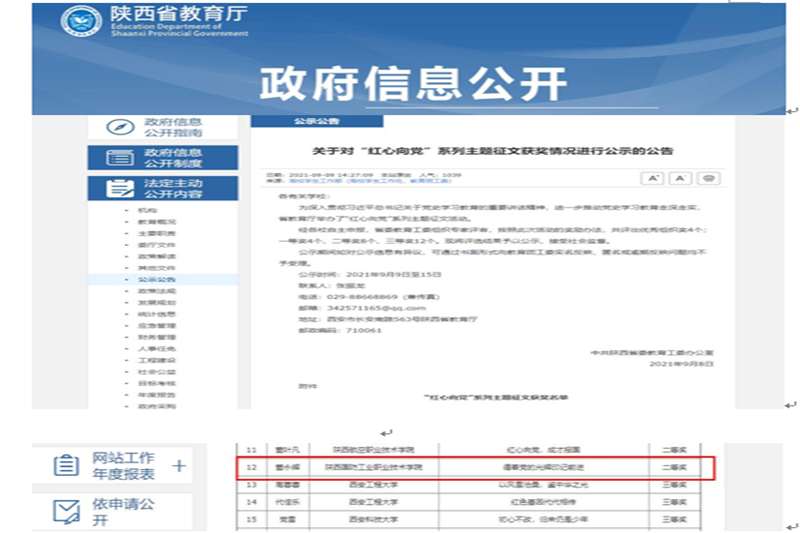 我校董永辉获得陕西省教育厅“红心向党”系列主题征文活动二等奖