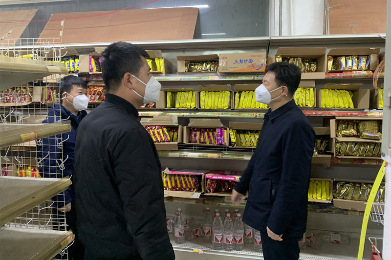 在学校超市、水果店,张卫平、王玉详细询问目前物资供应情况,强调要加快货物补充,切实保障学生日用品、食品和水果供应,一定保持价格稳定。张卫平表示,校方会与鄠邑区政府积极沟通,保证物资车辆正常运行。