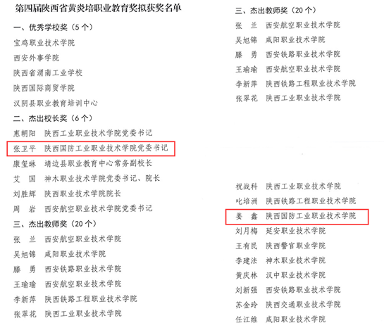 近日,陕西省中华职业教育社公布了第四届陕西省黄炎培职业教育奖获奖名单,我校党委书记张卫平荣获“杰出校长奖”,我校人工智能学院院长姜鑫荣获“杰出教师奖”。