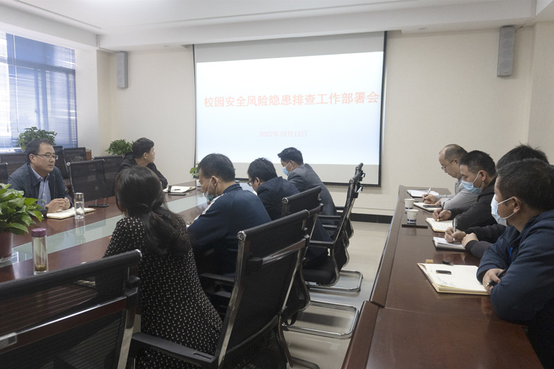 为切实推进学校安全稳定工作,10月12日下午,我校在招就处宣讲厅召开校园安全风险隐患排查工作部署会议,副校长张永军出席会议并讲话,党政办公室、宣传部、学工部、教务处、保卫处、基建处、后勤处、纪委监督检查室、离退处、南区综合办、军事体育部等相关部门负责人参加会议。