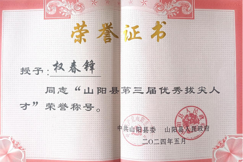 5月17日,我校教育人才“组团式”帮扶教师权春锋荣获山阳县第三届优秀拔尖人才称号。2023年,山阳县政府为加快推进人才体制机制改革,建强人才队伍,为推进山阳经济社会发展贡献人才力量,经山阳县委研究,决定开展第三届优秀拔尖人才表彰工作。评选范围为山阳经济社会高质量发展做出重大贡献的各类人才,实绩突出,业务拔尖,总名额20名,教育教学类5名。