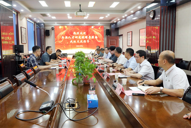 8月22日,中国兵器工业集团人才研究院副院长杨国顺、先进制造教研部部长孙汉中,北方至信人力资源评价有限公司产业园服务部部长梁平一行来校交流座谈。我校党委书记全卫强出席座谈会,党政办公室、教务处、校企合作处、发展规划处、智能制造学院、人工智能学院、化学工程学院相关负责人参加会议。会议由校党委副书记杨聪主持。