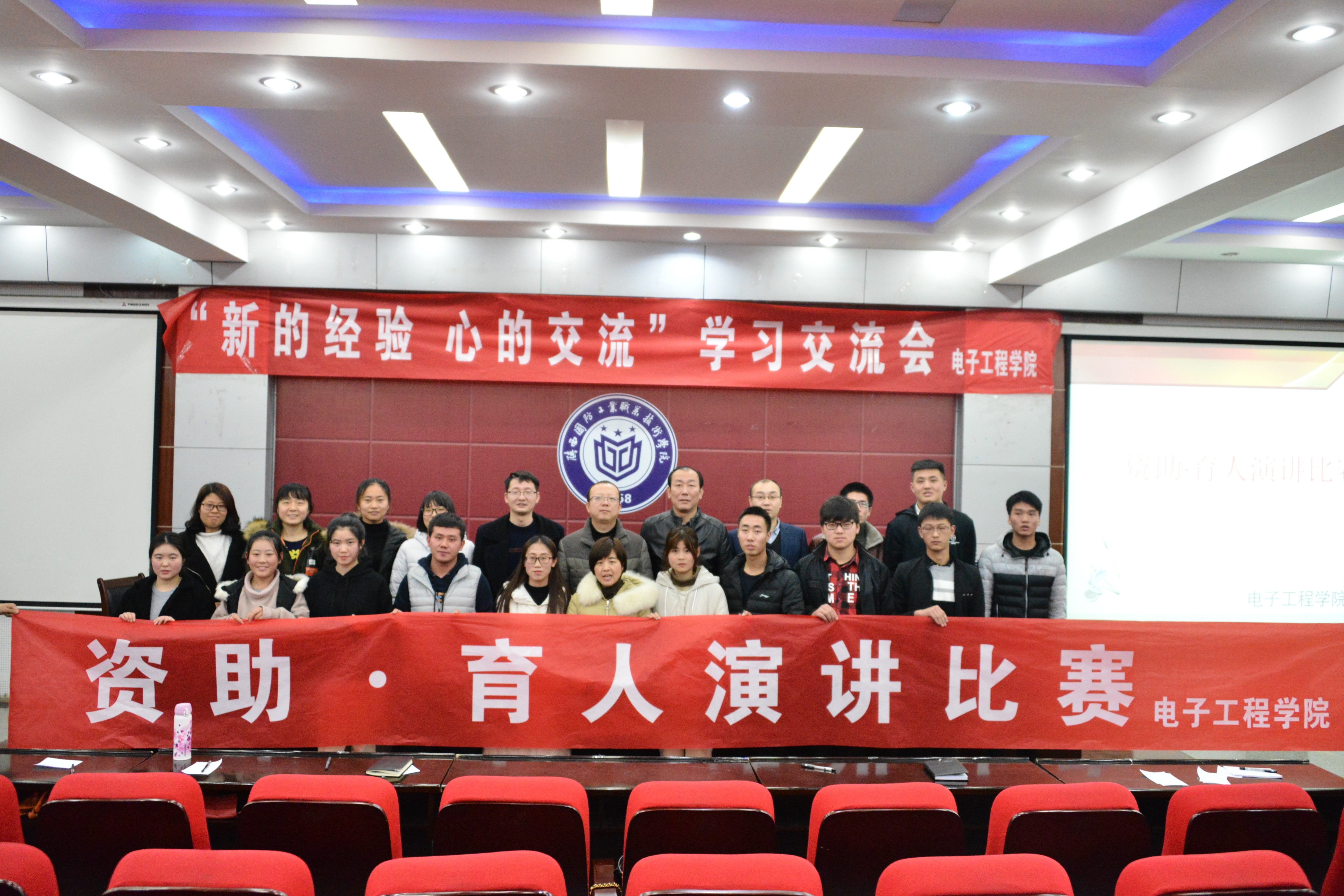 为大力宣传国家学生资助政策,提升2018级新生专业知识技能学习方法,激发学生勤奋学习、励志成长、感恩社会、报效祖国的热情,形成自勉、他励、共励的良好教书育人氛围,电子工程学院于2018年12月5日在教二报告厅举办以“新的经验,心的交流”为主题的学习经验交流会暨资助育人演讲比赛,电子工程学院党总支书记张双琦老师、学生科科长赵鹏老师、团总支书记刘沛静老师和全体辅导员老师出席了本次活动。
