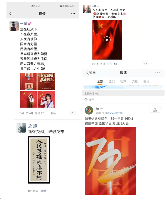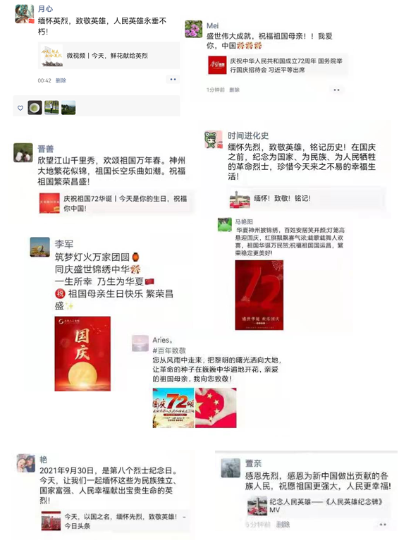 通过本次活动的开展表达了老师们对祖国的美好祝愿,抒发自己的爱国情怀,汲取奋进力量,感悟今天各民族平等、团结、互助、和谐的美好生活来之不易,进一步坚定听党话、跟党走的决心和信念。