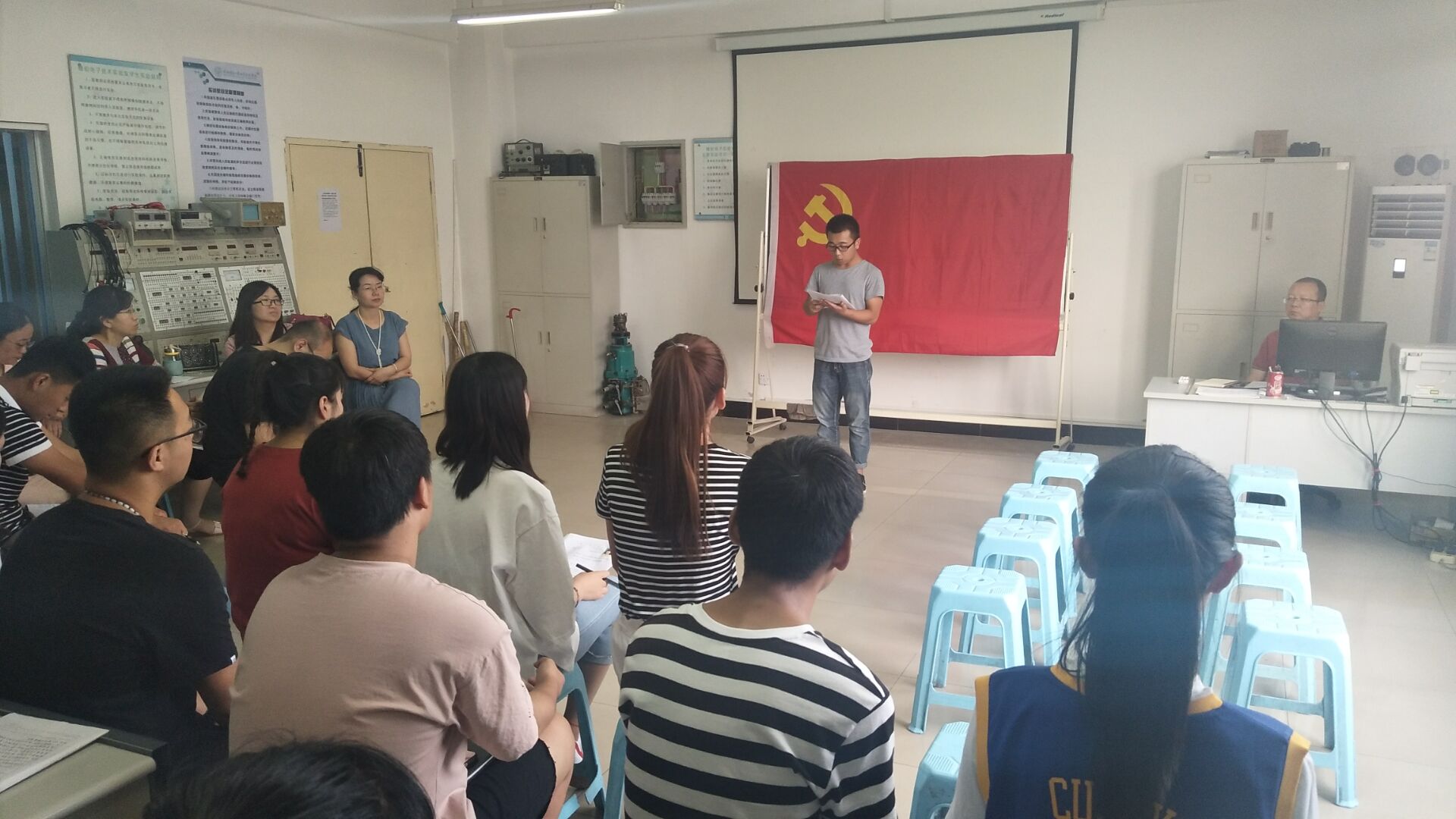 2018年6月7日下午4点50分,电子工程学院党总支学生党支部在北校区8-404召开支部党员大会,会议由电子工程学院学生党支部书记赵鹏老师主持。