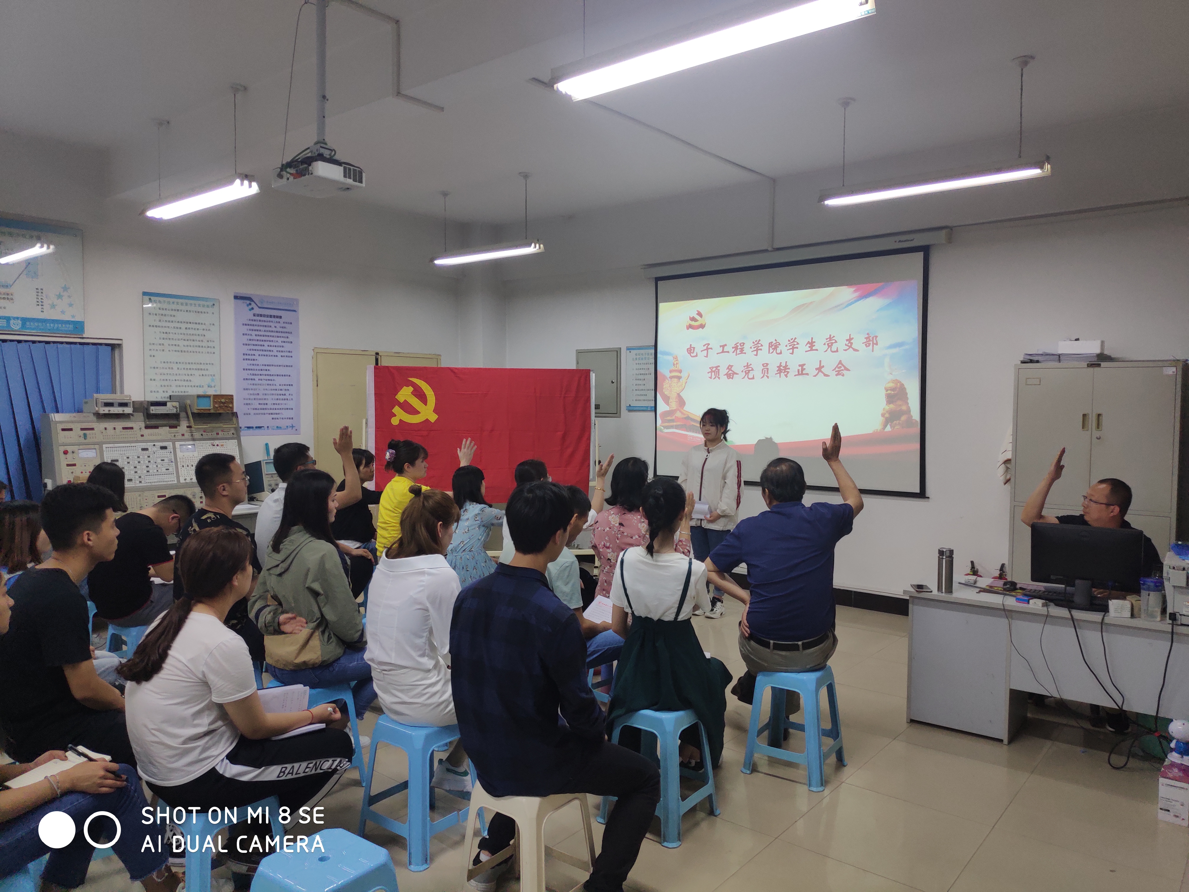 电子工程学院学生党支部于2019年5月30日晚7:30,在北8-404召开预备党员转正大会。本次会议由分院学生党支部书记赵鹏老师主持。