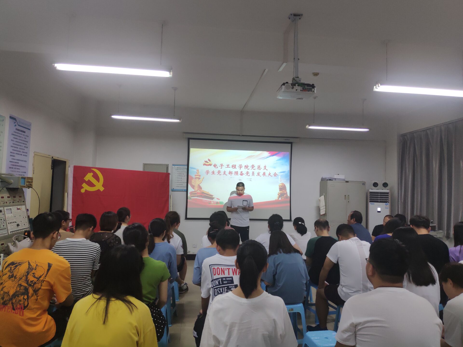 党员不仅是一种荣誉,更是一种责任。根据《中国共产党章程》发展党员的要求,电子工程学院学生党支部于2019年6月11日召开支部大会,讨论接收张晶等15名同志为中国共产党预备党员事宜。会议由学生党支部书记赵鹏老师主持。