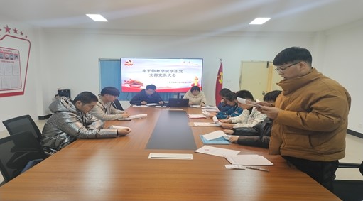 根据支部发展党员工作计划,2021年12月8日下午15:00,电子信息学院学生党支部于4-409召开预备党员转正大会,讨论关于雒金凤等8名预备党员同志申请转为中共正式党员的事宜。