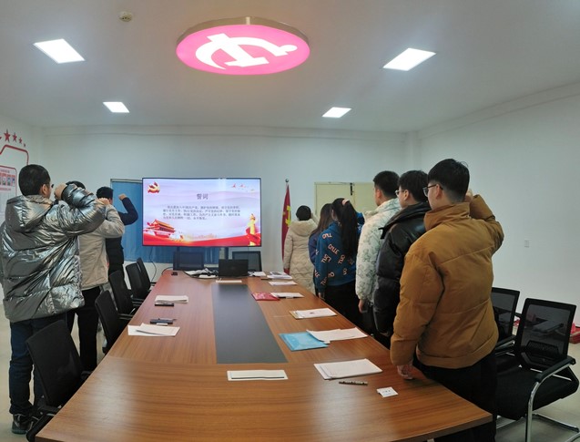 会议主要讨论了预备党员雒金凤等8名同志转正式党员问题。首先预备党员同志详细的汇报了自己在预备期间的表现,总结了在政治上、思想上、工作上和学习上的进步以及待改进的地方,表达了自己加入中国共产党的坚定决心。接着,各位同志的介绍人对其在预备期间的教育和考察情况作了交流讨论。随后学生党支部党员投票进行表决,一致同意各位党员转为正式党员。各位同志也再次表明了自己的态度和决心。为增强新党员的党性观念、历史使命感和社会责任感。全体党员肃立,面对党旗进行庄严的入党宣誓。
