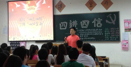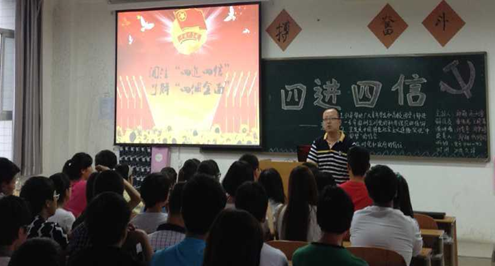活动中,主持人阐述了什么是“四进四信”。我们要以“四进”为手段,“四信”为目标,通过“进支部、进社团、进网络、进团课”,引导帮助大家进一步牢固树立对党的科学理论的信仰、坚定走中国特色社会主义道路实现“中国梦”的信念、增强对党和政府的信任、增进对以习近平同志为核心的党中央的信赖。本次团活动邀请了院团委书记李俊涛老师和电子信息学院团总支书记赵鹏老师。通过李俊涛老师的讲话,同学们对“四进四信”有了更深的理解。