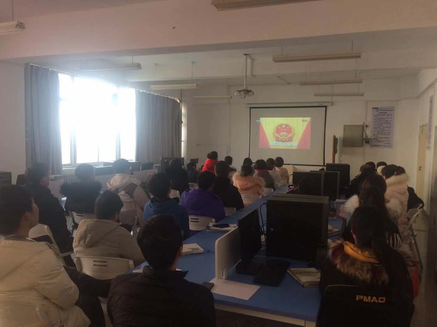 电子工程学院党总支于2018年12月18日上午10时在北校区8-303组织学院师生认真观看“庆祝改革开放40周年大会”现场直播。本次庆祝改革开放40周年大会让师生们感受到中国特色社会主义进入了新时代,开启了新征程,伟大时代呼唤伟大精神,电子工程学院全体师生将以习近平新时代中国特色社会主义思想为指导,以这次受到表彰的先进个人为榜样,不忘改革开放初心,凝心聚力,开拓创新,不断把教育事业推向前进,创造新时代教育发展的新辉煌。
