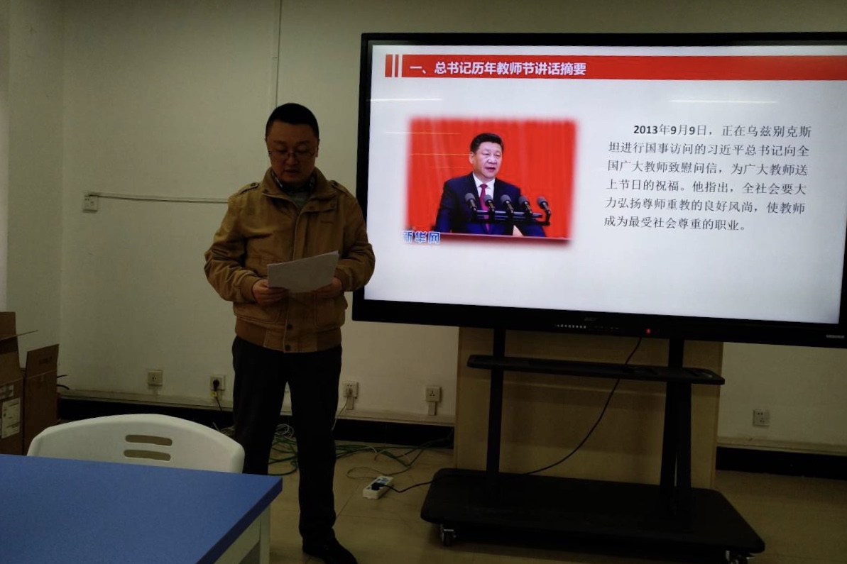 同时在8-303电子技术教工党支部开展以“学习习近平总书记讲话、做合格党员教师”主题党课专题活动,出席本次活动的是电子技术党支部全体教工党员,屈宝鹏书记主持并讲述了此次党课,屈书记主要从以下几个方面进行讲述:1.习近平总书记历年教师节讲话摘要;2.习近平总书记全国教育大会讲话摘要;3.做新时代高素质党员教师。