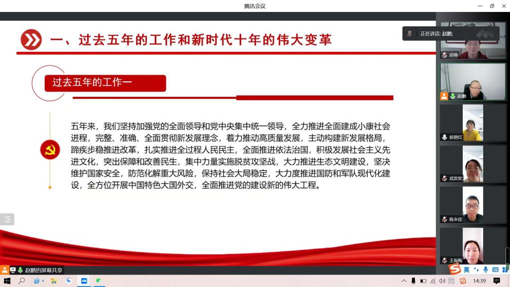 本党课主要从中国共产党过去五年的工作和新时代十年的伟大变革、开辟马克思主义中国化时代化新境界、新时代新征程中国共产党的使命任务等12个方面进行了全面深刻的讲解。赵鹏书记强调全体党员必须牢记,坚持党的全面领导是坚持和发展中国特色社会主义的必由之路,中国特色社会主义是实现中华民族伟大复兴的必由之路,团结奋斗是中国人民创造历史伟业的必由之路,贯彻新发展理念是新时代我国发展壮大的必由之路,全面从严治党是党永葆生机活力、走好新的赶考之路的必由之路。