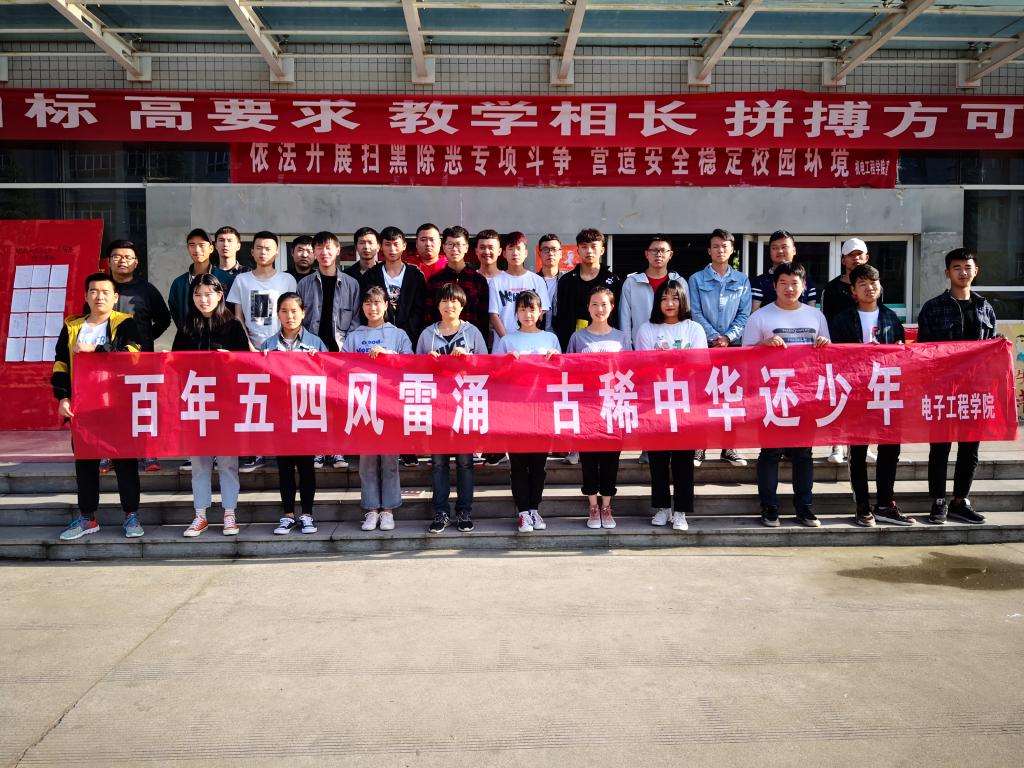 少年兴则国兴,少年智则国智,少年强则国强。这次纪念以“百年五四风雷涌,古稀中华还少年”为主题系列活动的顺利开展,调动了广大学生的积极性,大家都以饱满的热情参与其中,使这次活动达到了很好的教育效果。与此同时也体现了电子工程学院学子的青春活力及爱国热情,为在校大学生的文娱生活增添了更多的乐趣和内涵。为此我们要以“五•四”精神为动力,努力奋进,严格要求自己,做一名优秀的大学生。