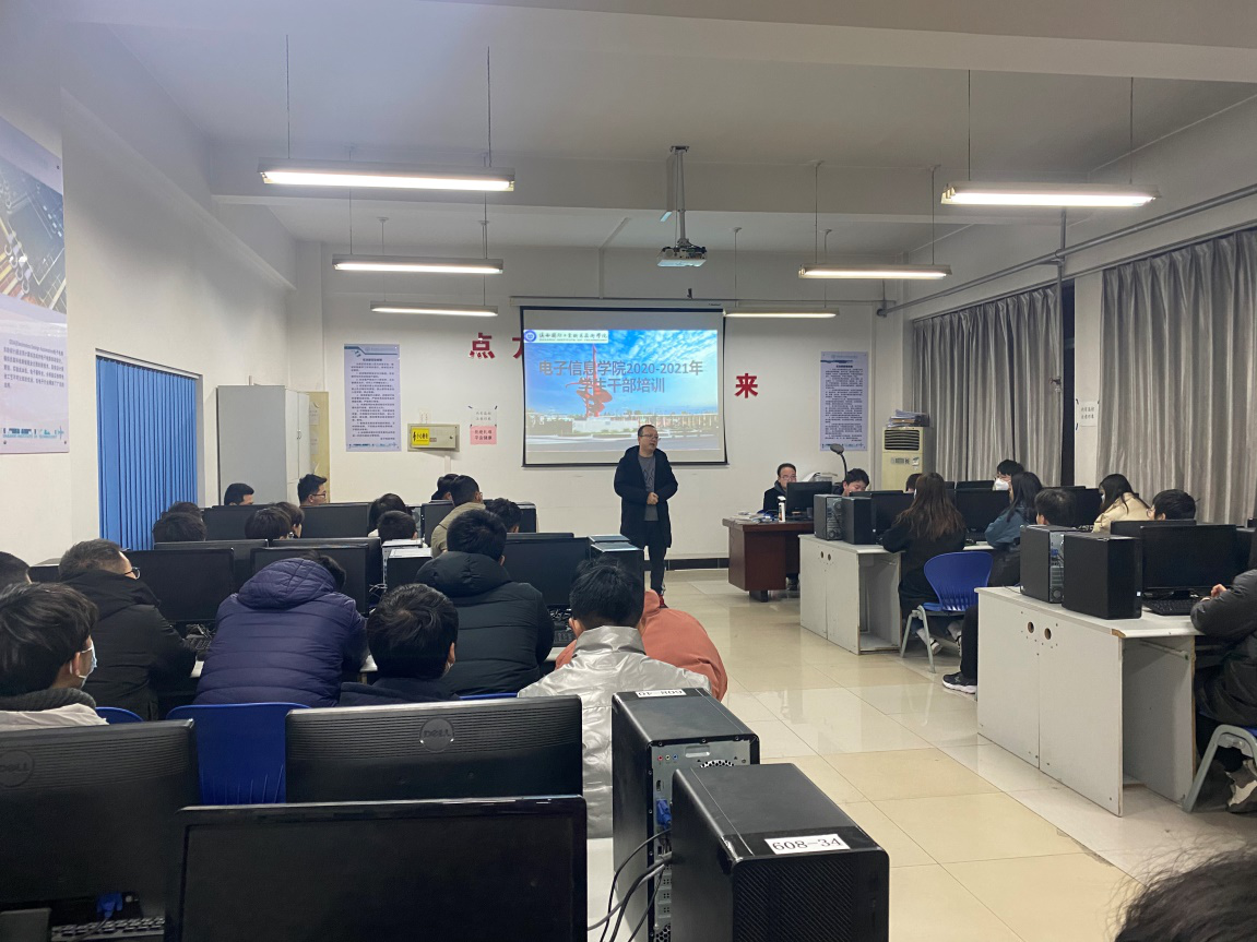 为提高学生干部的政治素养和工作能力,进一步发挥学生干部的先锋模范带头作用。2021年 1月4日晚上7点电子信息学院于8-608召开学生干部培训大会,参加本次大会人员为电子信息学院各学生干部。
