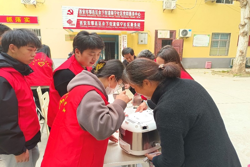 2023年11月9日星期四下午14:00,电子信息学院在鄠邑区余下街道银宁社区开展了“义务维修社区行·青春力量入基层”进社区活动,团总支书记李徐辉带领团员青年及电子创作协会同学参加了此次活动。此次活动旨在结合自身专业知识,将服务人民、回馈社会的中国梦化作实际行动,在社会实践的磨砺中长才干、壮筋骨。