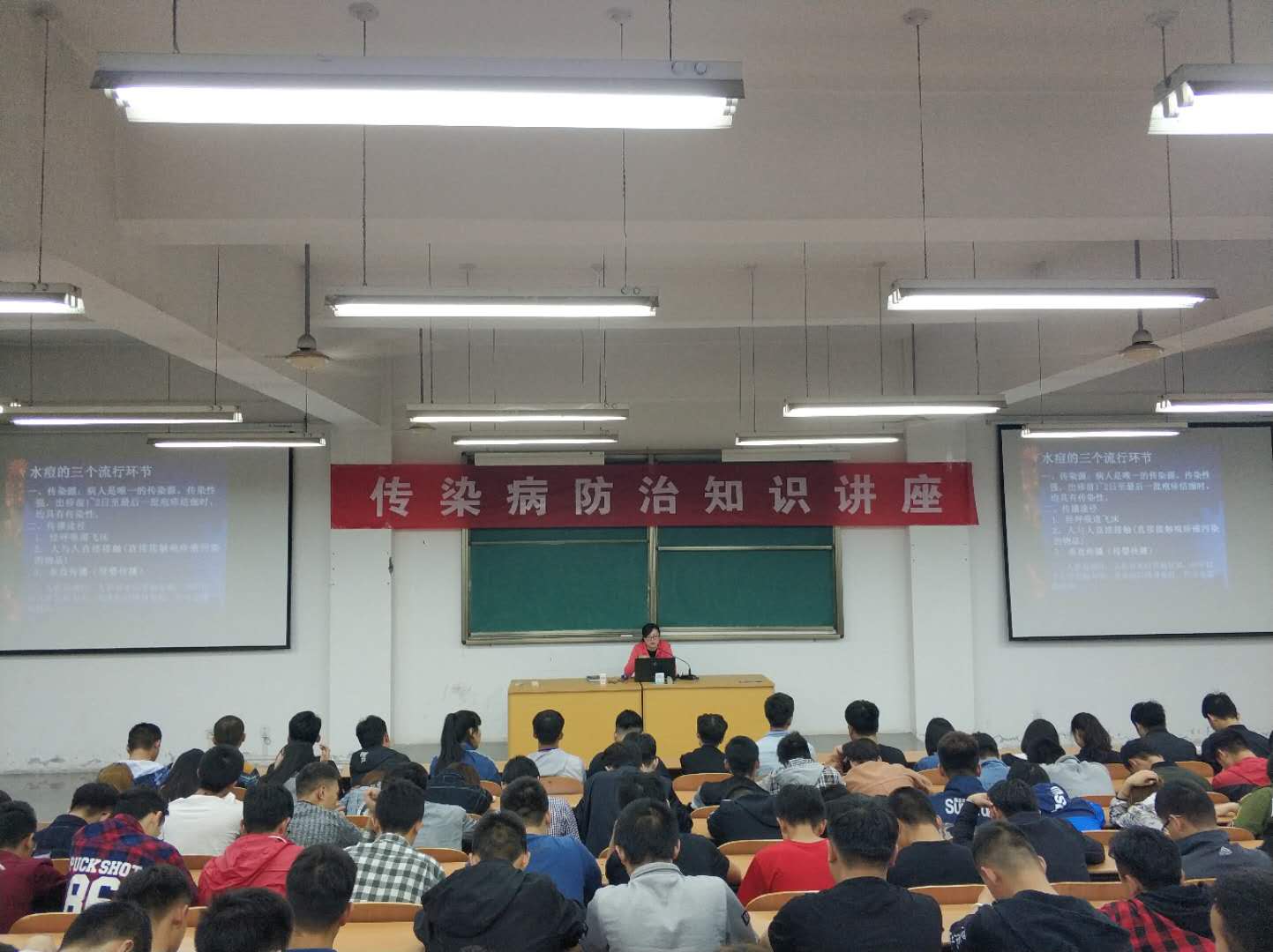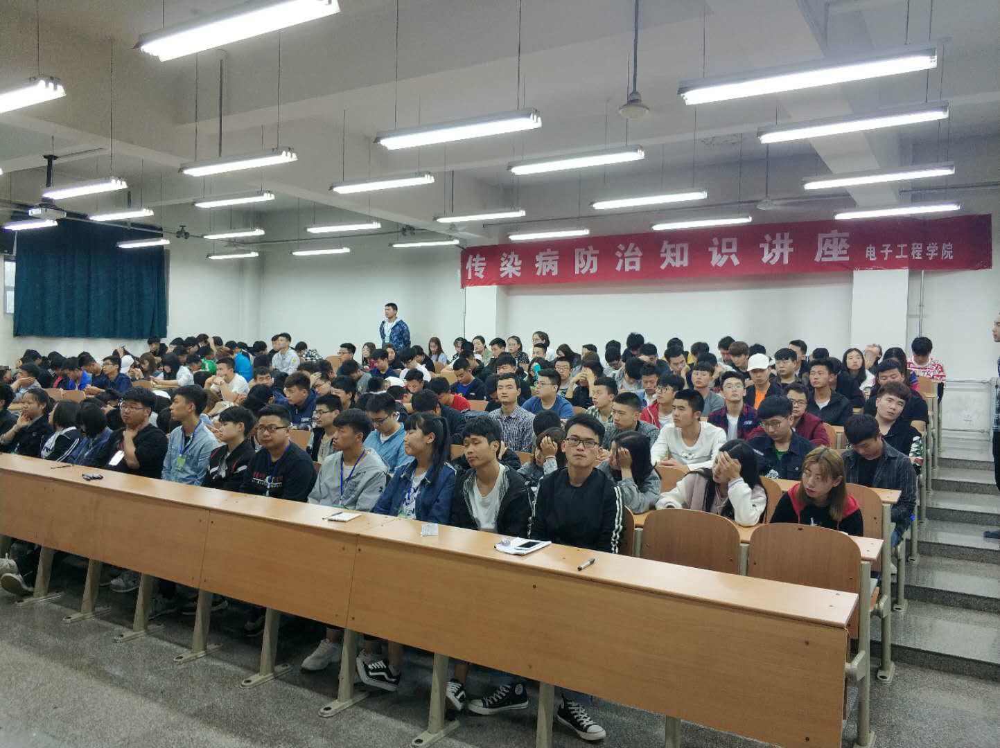 电子工程学院于2018年5月8日下午4:50在北校区3-231为电子分院一年级和二年级学生做关于传染病预防知识专题讲座。本次活动是为了进一步提升分院学生的身体健康素质,提高分院学生对传染病预防知识的了解,加强学生对传染病的认识,电子工程学院与校卫生所联合开展传染病预防知识讲座,本次活动邀请有10年传染病预防工作经验的主治医师刘婷老师为学生做专题报告。