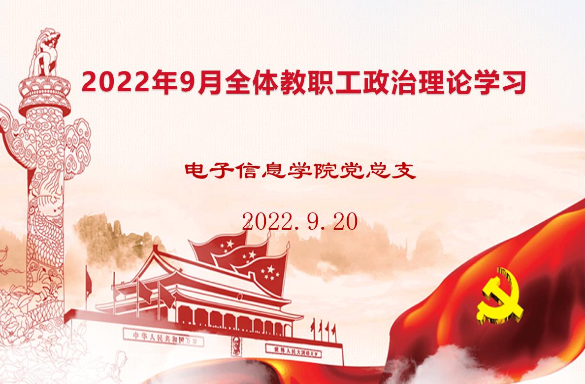 按照陕国职党宣〔2022〕22号文件《关于2022年9月教职工政治理论学习暨组织活动安排的通知》要求,9月20日下午,电子信息学院党总支组织全体教职工进行9月份政治理论线上学习,会议由电子信息学院党总支委员王古森主持,全体教职工参加会议。