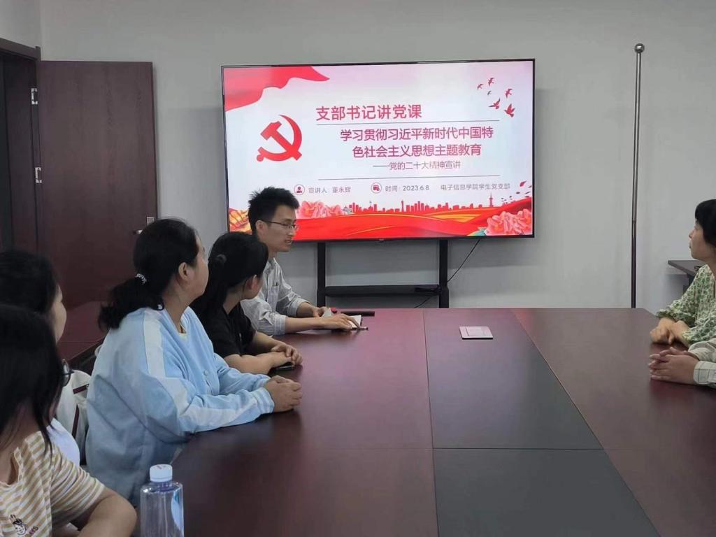 为深入开展学习贯彻习近平新时代中国特色社会主义思想主题教育,加强党员同志政治理论学习,根据校党委和电子信息学院党总支工作安排,6月8日下午,电子信息学院学生党支部在学院602会议室举行主题教育学习会暨支部书记讲党课活动。支部党员、预备党员参加了此次党课活动,会议由支部书记董永辉主持。