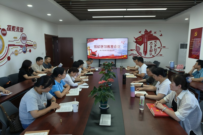 6月11日,电子信息学院党总支在博远楼602召开了党纪学习教育会议,会议由电子信息学院党总支书记赵鹏主持,全体教职工党员参加了会议。