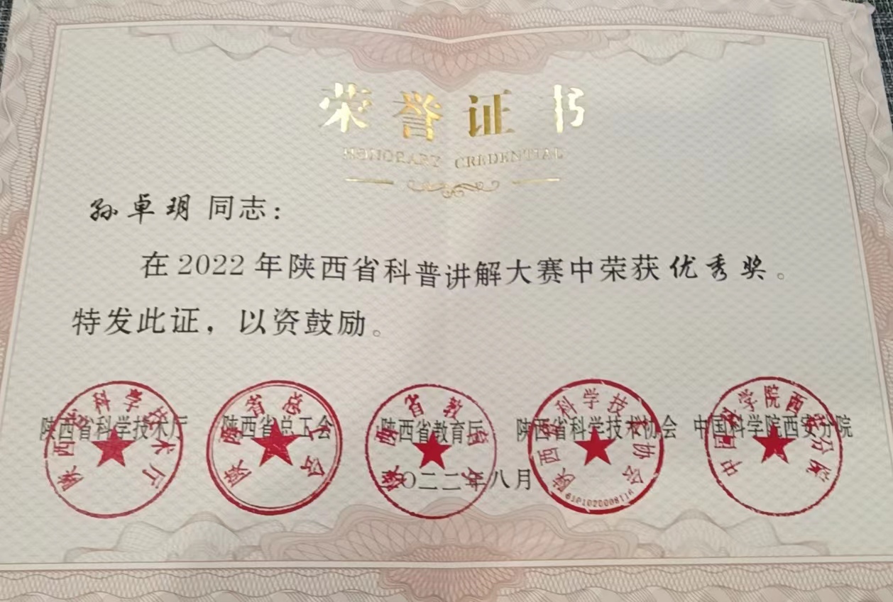近日,由陕西省科学技术厅、陕西省总工会、陕西省科学技术协会、陕西省教育厅、中国科学院西安分院共同举办的2022年陕西省科普讲解大赛公布评审结果,国防展馆讲解员孙卓玥获2022年陕西省科普讲解大赛优秀奖。