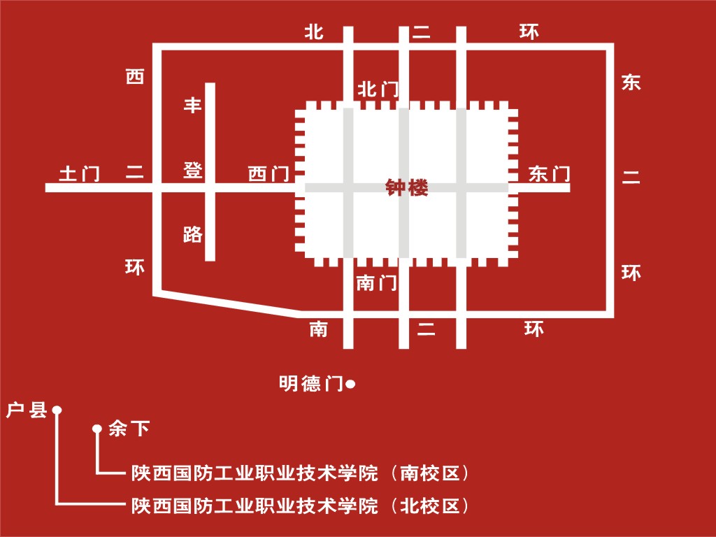自驾车: 从西汉高速户县出口下,沿迎宾大道西行至人民路十字南行1600米即到(北校区) |